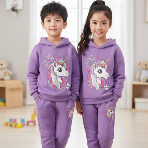 Keep your little ones warm and stylish this winter with our premium sweatshirt and trouser set. Made from soft-touch, one-side brushed blazer fabric, this set ensures comfort and durability for active kids.